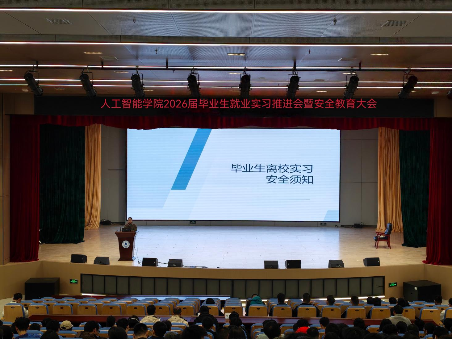本次大会既是毕业设计和实习就业工作的全面动员与部署,也是一次深刻的安全教育,更是一堂饱含师长期许的毕业前思政大课。人工智能学院2026届毕业生已整装待发,将以充分的准备、清醒的头脑和昂扬的姿态,自信从容地迈向人生新阶段,在广阔天地中书写属于自己的精彩篇章。