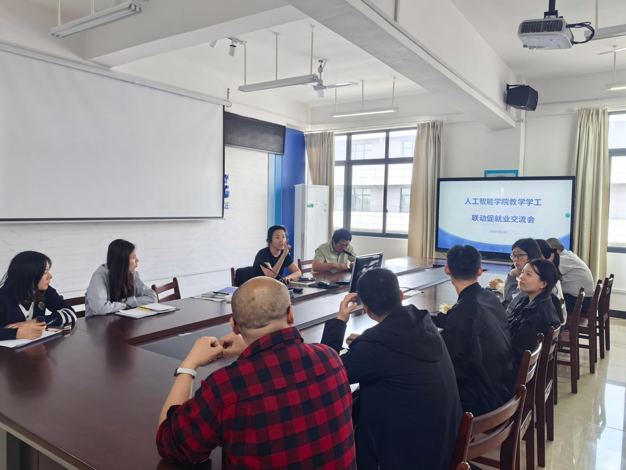 辅导员分别汇报了2026届毕业生当前就业情况、未就业学生主要困难和2027届毕业生职业规划需求。各教研室主任结合专业特点,就如何加强实习基地建设、优化毕业设计选题、拓展行业资源等提出建议。与会人员围绕“如何实现教学与学工信息共享”“如何将就业工作前移至低年级”等议题展开热烈讨论,并形成联动工作方案。